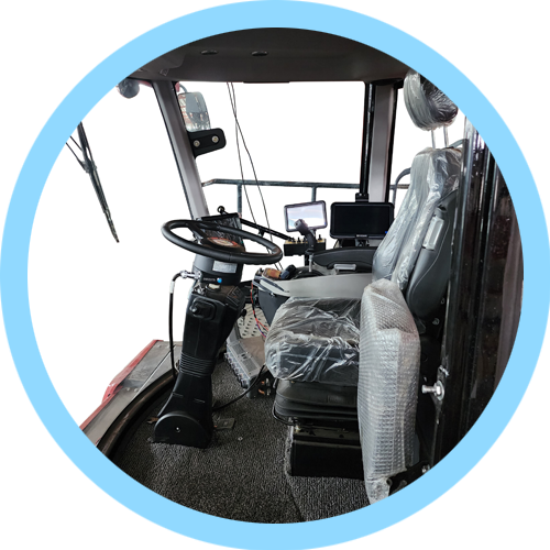 整車全部功能都可以在扶手箱電控按鍵進行操作。 增壓駕駛室寬敞明亮,保護駕駛員安全。配備豪華氣動懸浮座椅,副駕駛位。 智能車載系統(tǒng)可以清晰顯示油溫水溫轉速等基本信息并且搭配進口智能噴霧系統(tǒng)。
